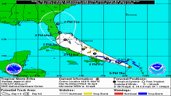 Puerto Rico, las islas Vírgenes y gran parte de las Antillas Menores en el Caribe mantenían activa una alerta de tormenta tropical, mientras que República Dominicana y Haití donde la tormenta se dirigirá luego, también ponían en guardia a sus poblaciones ante la posible de fuertes lluvias y oleaje.