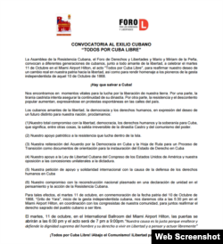 El encuentro, convocado por la Asamblea de la Resistencia Cubana, el Foro de Derechos y Libertades y Mario y Miriam de la Peña, también rendirá homenaje a los pioneros de la gesta independentista de aquel 10 de Octubre en que se dio inicio al “Grito de Yara”, según dio a conocer el sitio web del evento.